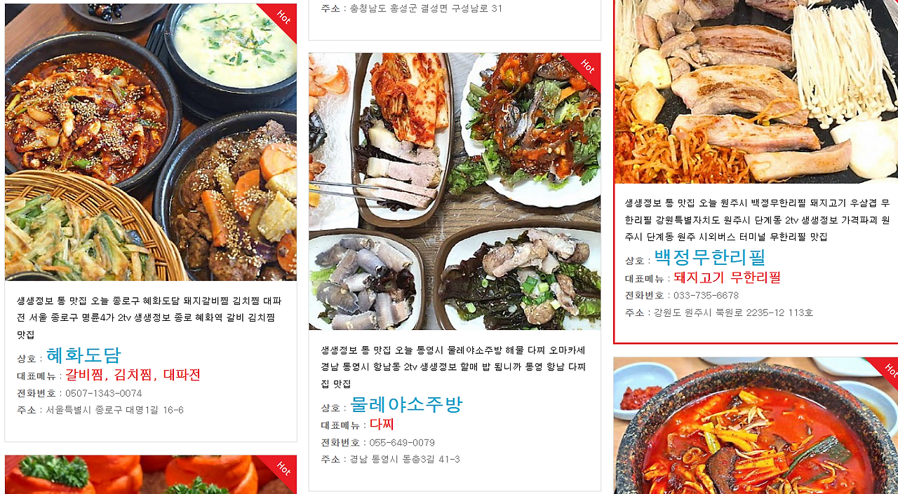 KBS 2TV 생생정보에서 오늘 소개된 맛집이 궁금하신가요?