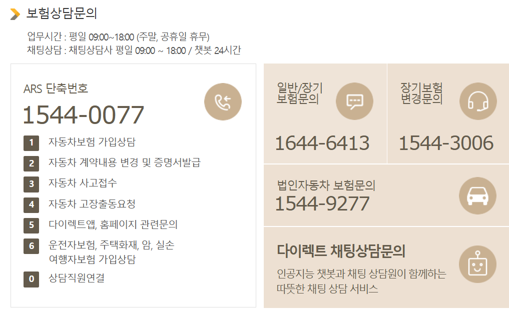 - 보험상담 ARS: 1544-0077
